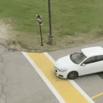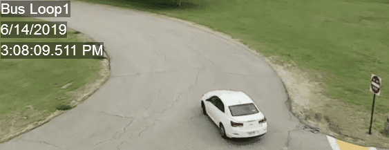 Upon reviewing the video surveillance footage from the school, at approximately 3 p.m. June 14, a white Chevy sedan was observed pulling into the parking lot of the school and then leaving a short time later.